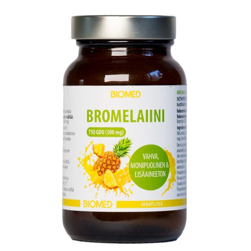 - Aterian yhteydessä: Ota 1-2 kapselia Biomedin Bromelaiinia ennen ateriaa tai sen yhteydessä, erityisesti runsasproteiinisten aterioiden yhteydessä.
