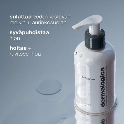 dermalogica PreCleanse on syväpuhdistava puhdistusöljy, joka sulattaa iholta öljypohjaisen lian, aurinkosuoja-aineet, meikin ja ilmansaasteet. Se poistaa epäpuhtauksia tehokkaasti huokosia tukkimatta ja jättää ihon tuntumaan pehmeältä ja ravitulta – ei kiristävältä.