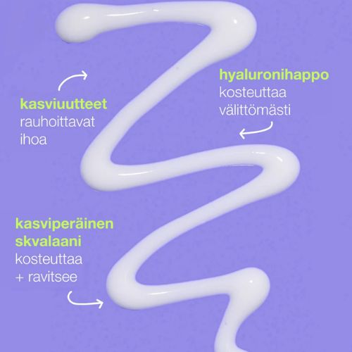 Käyttö: Levitä kasvoille ja kaulalle puhdistuksen ja suihkeen jälkeen, aamuin illoin.