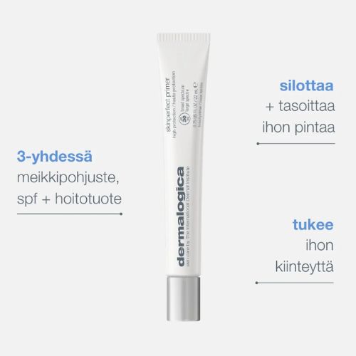 SkinPerfect Primer SPF30 toimii sekä meikin pohjustustuotteena että hoitavana aurinkosuojana, ja sitä voidaan käyttää myös silmänympärysiholla. Se on erinomainen valinta sinulle, joka haluat yhdistää ihonhoidon, UV-suojan ja viimeistellyn meikkipohjan yhteen helppokäyttöiseen tuotteeseen.